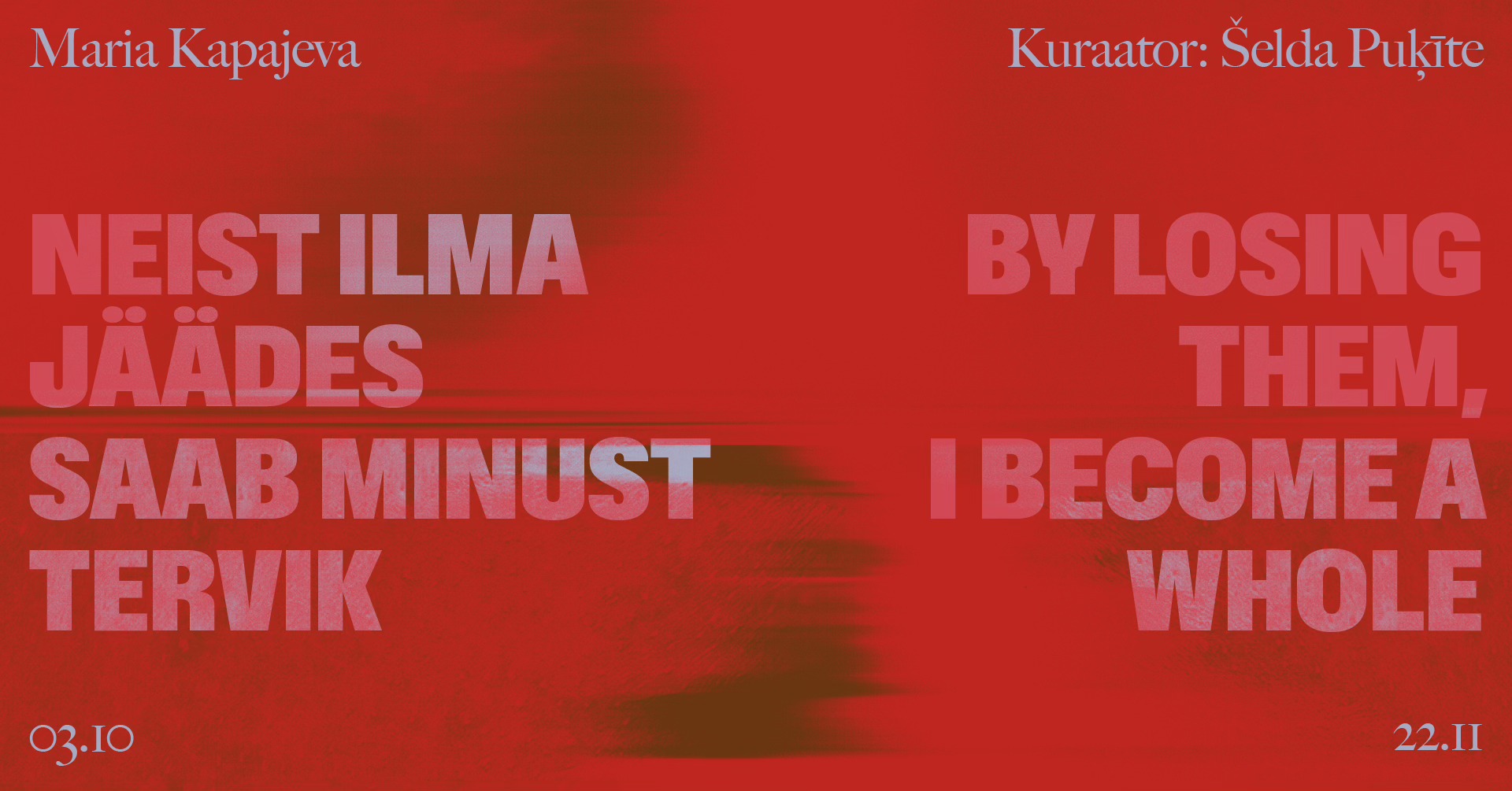 We open the exhibition By Losing Them, I Become a Whole on 3 October at 18.00 at Kogo Gallery. лäбипõленуд (laebipoelenud) performance will take place at the opening.