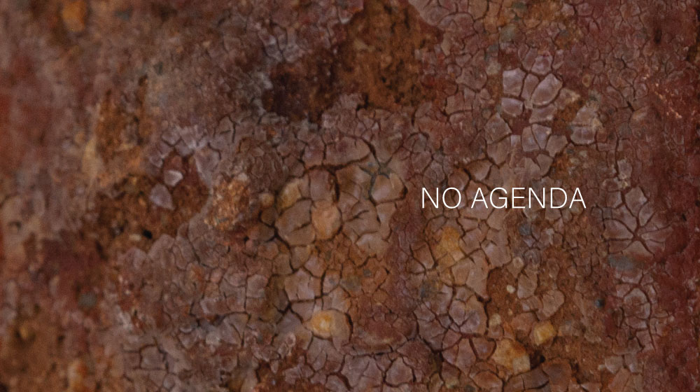 “No Agenda” ei ole juhis, vaid kutse. Tähistades ruumi teket aeglustuses ja pinge maandust materjalis.