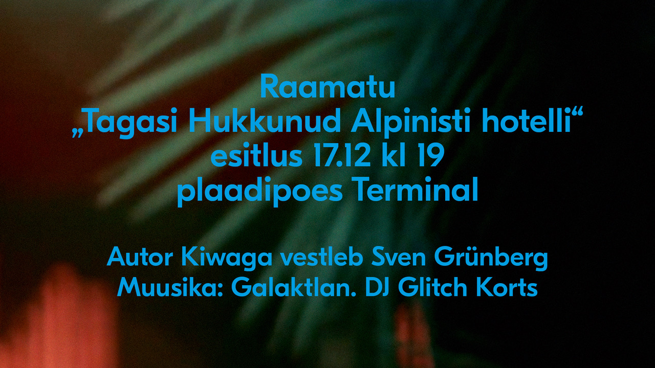 Raamatuesitlus toimub 17. detsembril kell 19 plaadipoes Terminal (Telliskivi 60/2), kus Kiwaga vestleb Sven Grünberg. Muusika: Galaktlan, DJ Glitch Korts.