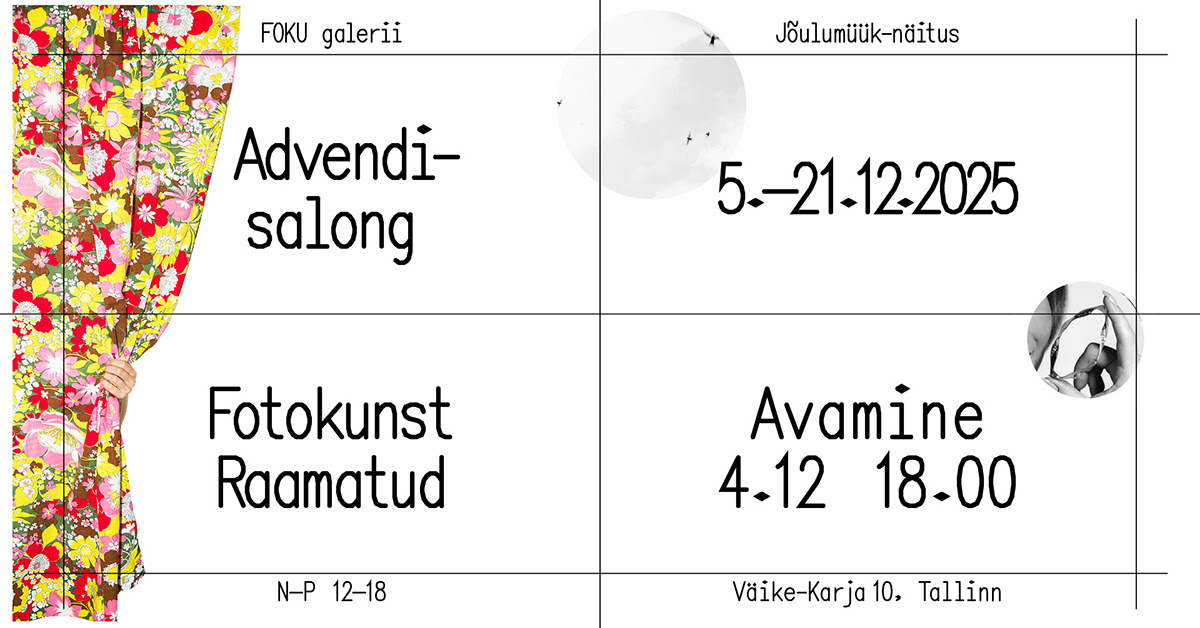 Neljapäeval, 4. detsembril kell 18 avab FOKU galerii Tallinna vanalinnas Advendisalongi, kus saab tutvuda kaasaegse Eesti fotokunstiga ning soetada kunstnike limiteeritud tiraažides printe, kunstnikuraamatuid ja erialast kirjandust.