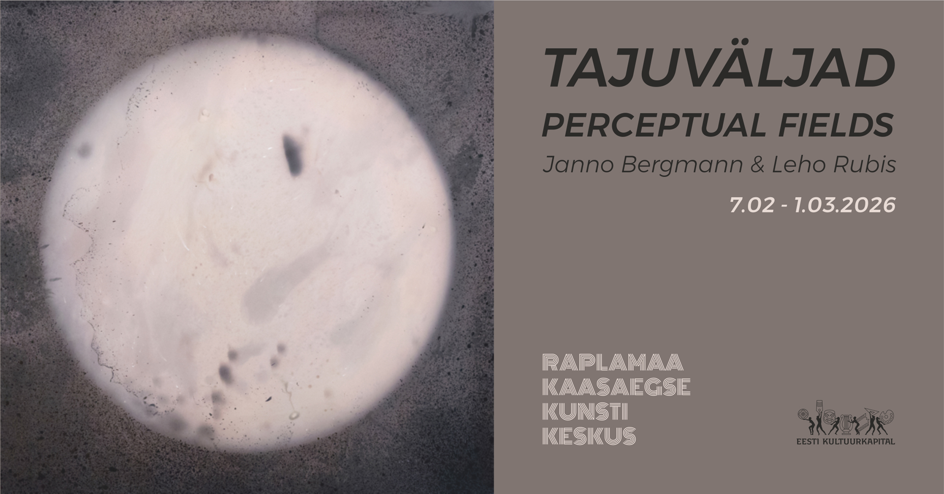 Raplamaa Kaasaegse Kunsti Keskus toob esmakordselt kokku kaks 50 aasta juubelit tähistanud kunstnikku, Janno Bergmanni ja Leho Rubise, kelle näitus „Tajuväljad” vaatleb inimese teadvuse ja tajuväljade suhet.