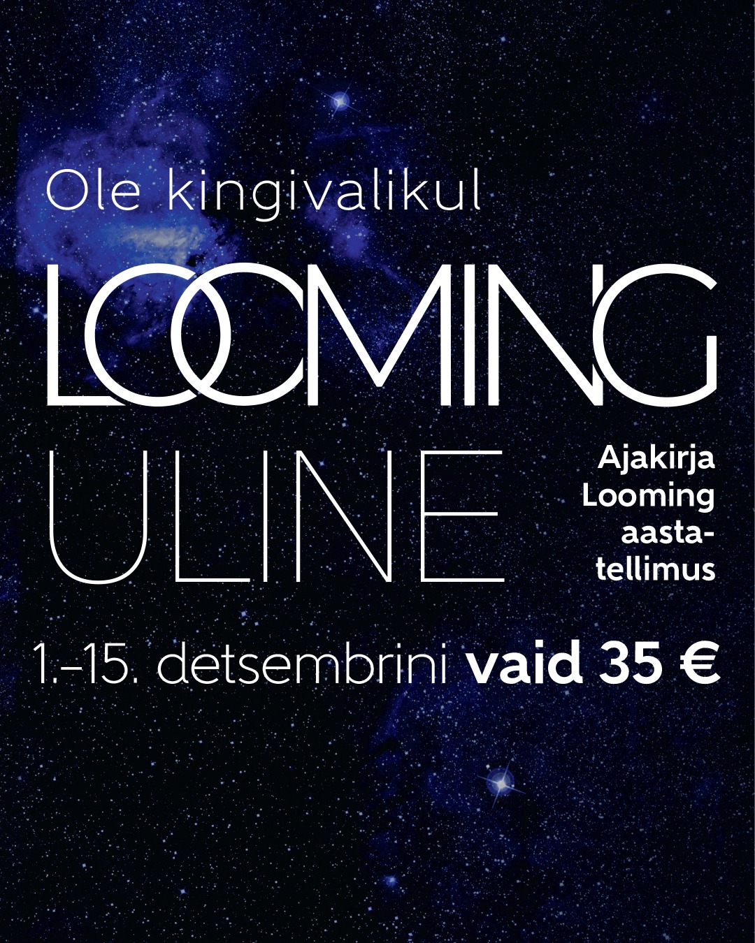 15. detsembrini on võimalus tellida kirjandusajakirja Looming 12 kuuks soodushinnaga 35 eur (tavahind 46 eur).