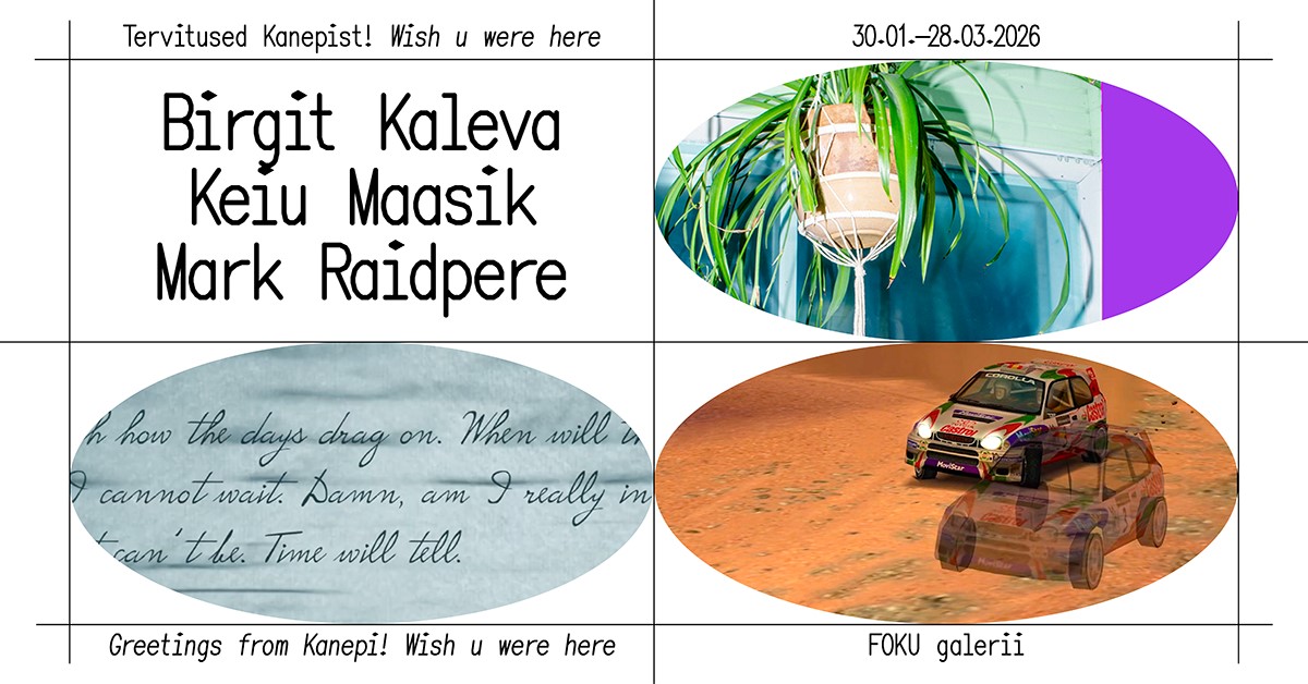 Neljapäeval, 29. jaanuaril 2026 kell 18.00 avatakse FOKU galeriis näitus „Tervitused Kanepist! Wish u were here“, kus osalevad kunstnikud Birgit Kaleva, Keiu Maasik ja Mark Raidpere.