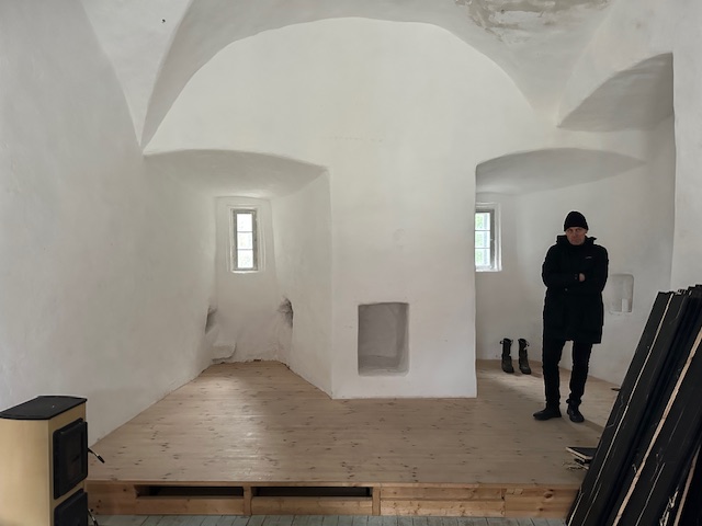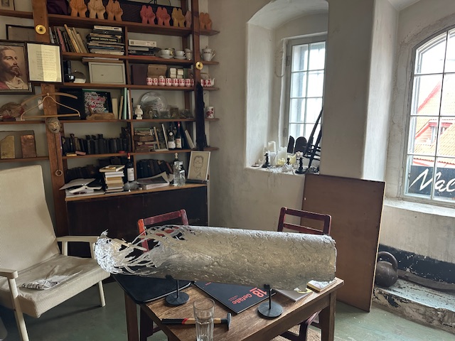 Jõudsime ka Pika jala torni, mis kuulub Tallinna linnale, aga mis on antud EKLile kasutada, et kohtuda Taavi Teevetiga, kellel on seal stuudio sisse seatud. Paraku on torni võimalik kasutada ainult soojal hooajal... Lisaks on tornis ka Eve Margusel üks väikeseks näituseruumis kohandatud korrus ning stuudio/ladu Tõnu Laugul. Näituseid saab teha ka pööningul, kogu torn on kasutatav siiski vaid soojal hooajal.