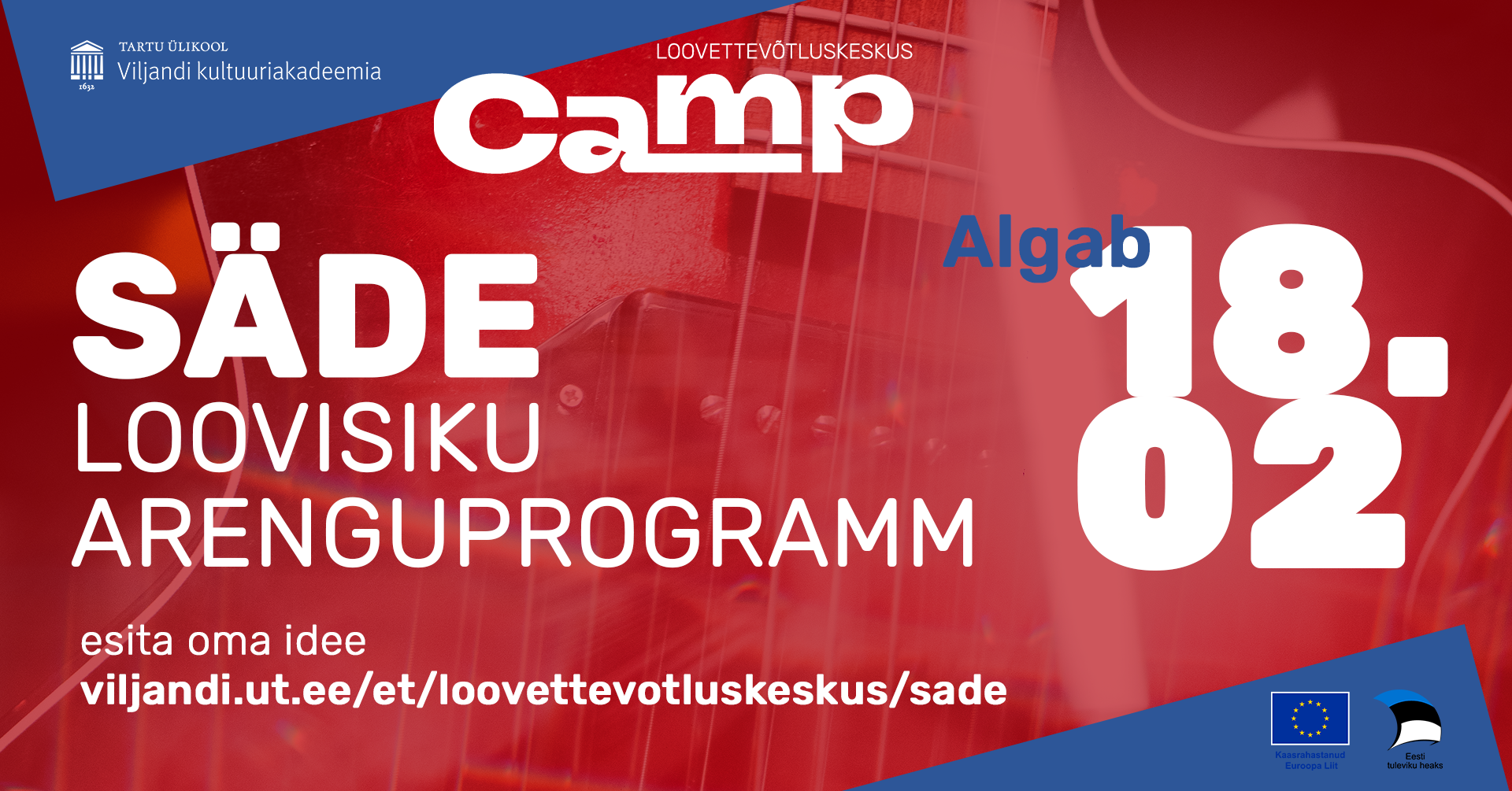 2026. aasta veebruaris alustab teist Tartu Ülikooli Viljandi kultuuriakadeemia loovettevõtluskeskuses CAMP viiekuuline arenguprogramm Säde, mis on suunatud loovisikutele ja alustavatele loovettevõtjatele.