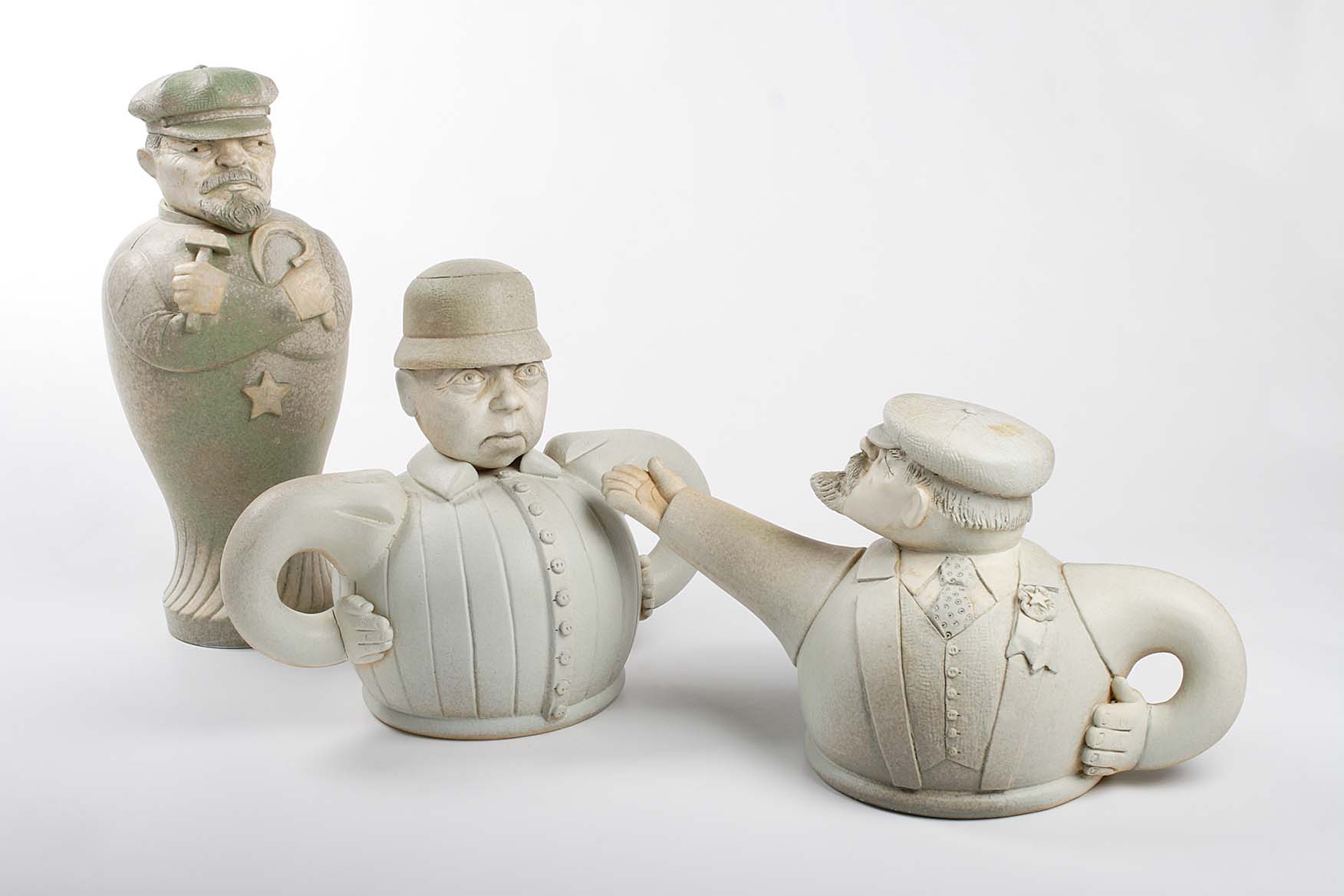 Foto: Evi Mardna, figuur Lenin I seeriast „Habekannud jälle moes - suhkrutoosist rääkimata“, kõrgkuumuspõletus, 1990 (Eesti Tarbekunsti- ja Disainimuuseum).
